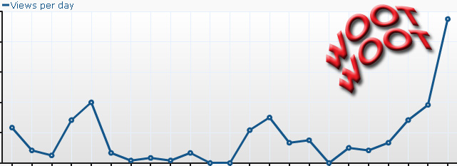 1. Some of you might be interested to know that as of now, only four hours into 9/19/09, the views have already crushed yesterdays highest total for views. It’s about 20 views from doubling yesterday’s total. I’m totally flabbergasted at this result. šŸ˜€