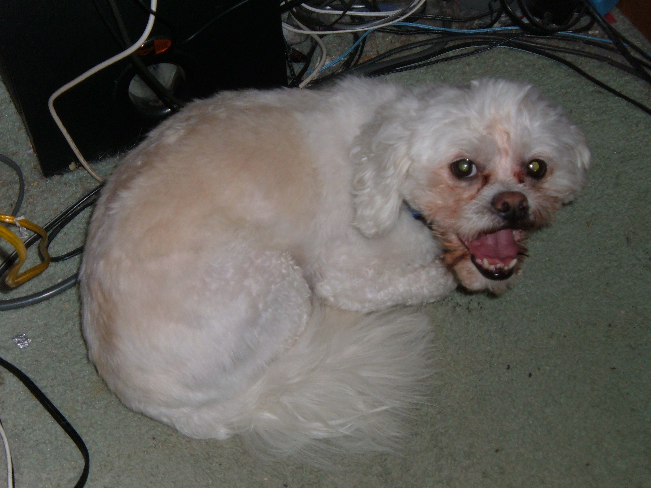 Although I’m sure some people will think this is just a picture of a little dog laying down, those of you who have dogs might be able to recognize the signs of a dog freaked out of his little gourd. This is a picture of Bailey hiding under my desk, curled up into a little ball with his tail tucked in and shivering. What catastrophic event caused Mr. Bailey’s distress? Lightning storm? Hurricane? A nationwide Carrot Top comedy tour? No! It’s “Sgt. Pepper’s Lonely Heart’s Club Band” being played on The Beatles Rockband. Incidentally Bailey started reacting to the game shortly after I read the trivia about how an ultrasonic sound, like a dog whistle, was added into the song Inner Grove on the album, though that song isn’t present in The Beatles Rockband. It wasn’t just Sgt. Pepper that scared Bailey though, he showed equal fear to “Here Comes the Sun”, “Octupus Garden”, “Get Back”, and every song in between. I guess something about the Beatles’ later years really frightens the poor little dog. After playing the game I ended up having to spend the next hour consoling the poor little dog that the big bad Paul McCartney wasn’t going to get him.